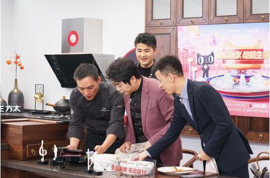 而在直播当晚,更是惊喜连连!前文中提及过,方太百万直播间构建了完整的家居环境,有着齐全的家居设备,因此方太双11直播中,粉丝可以看到具有真实感、生活感的厨房直播场景。增加直播间的家庭氛围感,让粉丝对产品与品牌产生亲近感。11月11日当晚,为了提振直播效果,方太还特邀了五星级酒店的大厨,使用方太产品,现场制作美食。消费者在看总裁明星们吃的其乐融融的同时,潜移默化感受到方太产品的便利和强大。